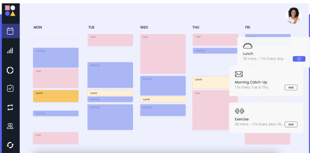It lives inside Google Calendar and focuses heavily on habits and meetings.